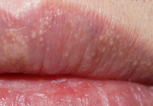 Белые точки на губах, это не что иное, как гранулы Фордайса. Их наличие является вариантом нормы, они безболезненны и никогда не вызывают беспокойства (кроме эстетического). Название произошло от имени ученого J.A. Fordyce, впервые описавшего их.
